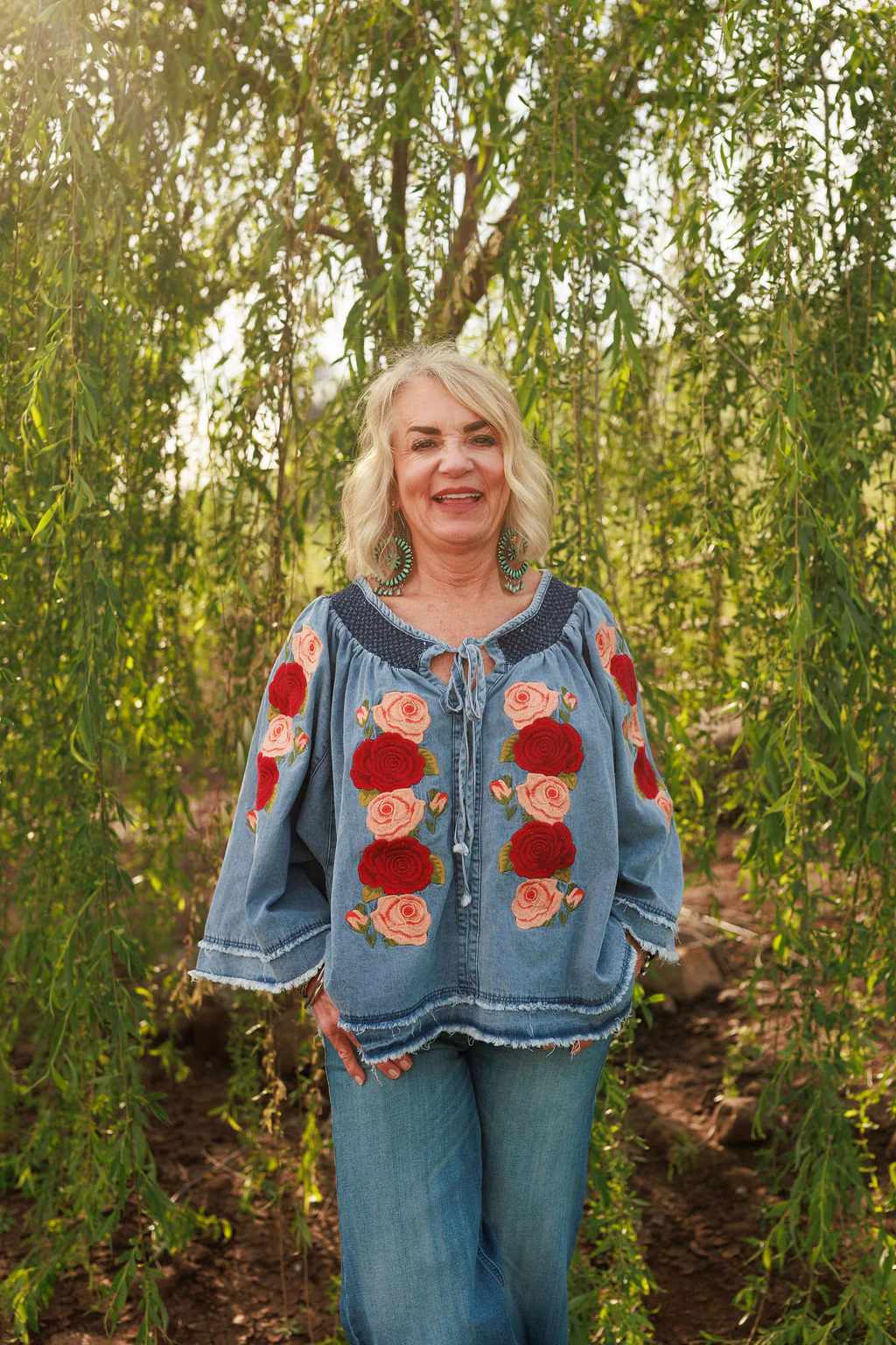 The Denim and Rose Top blends rugged Western style with a touch of feminine flair. Featuring classic denim accented with delicate rose details, it’s the perfect mix of tough and sweet — made for cowgirls who love to stand out with confidence and charm.