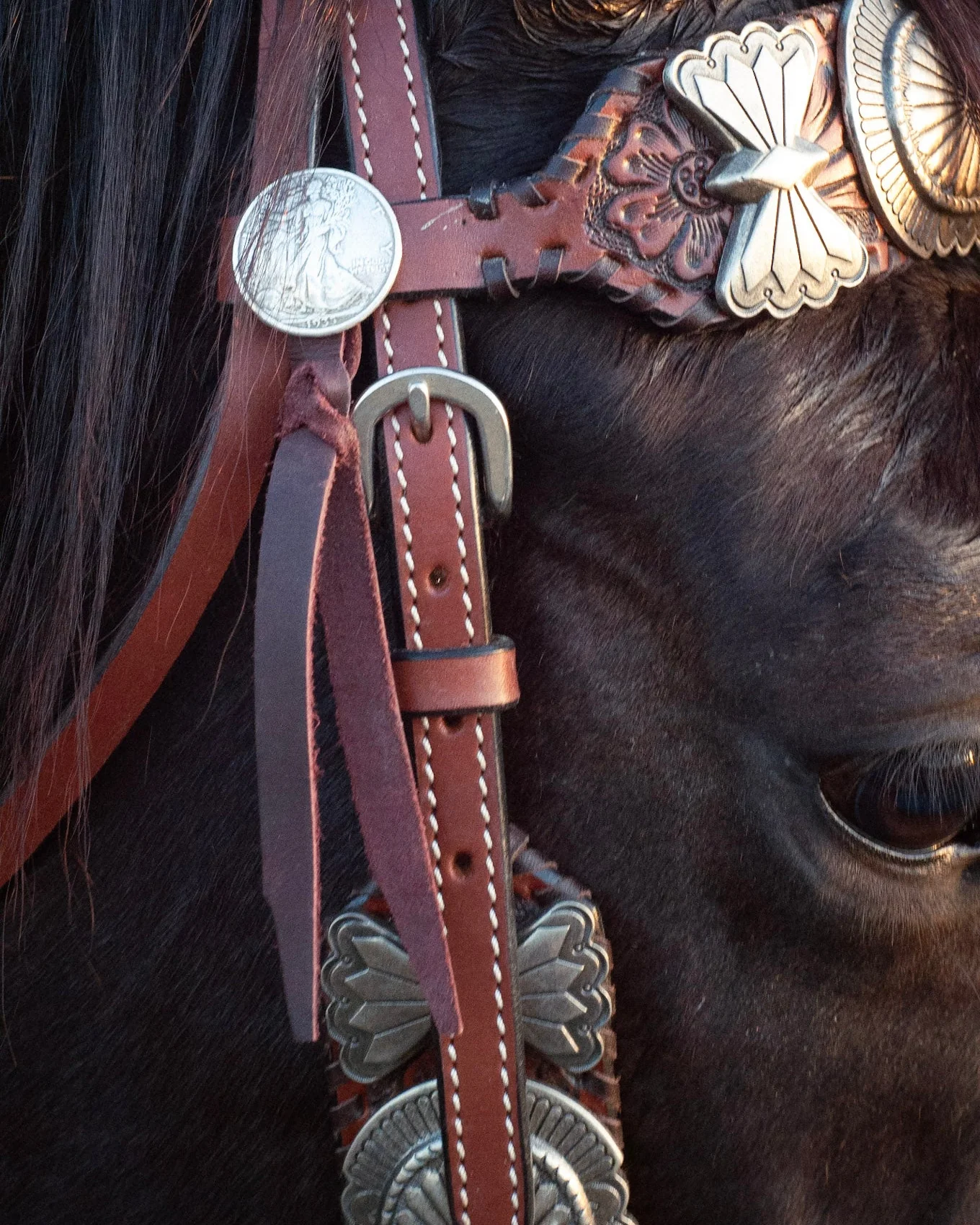 Slip into timeless western style with the Elko Headstall, handcrafted from genuine leather with charming coin details that catch the light with every stride. This classic piece combines authentic craftsmanship with that perfect rustic-luxe touch, making it an instant favorite for riders who appreciate quality and character. Built to last through countless adventures, it's the kind of accessory that only gets better with age.