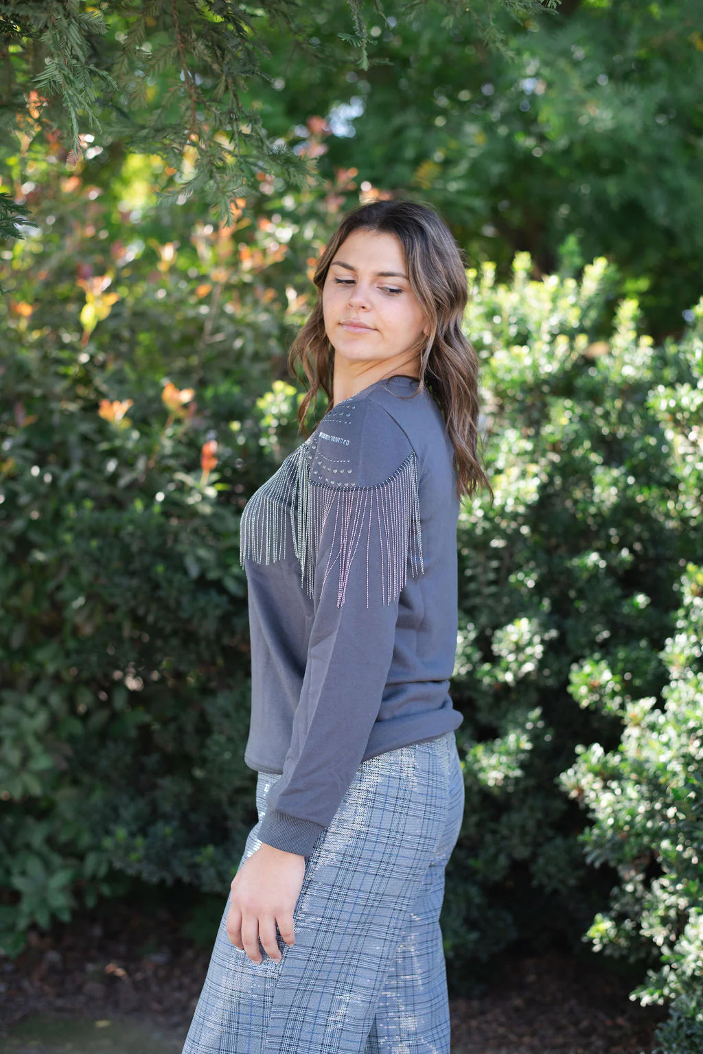 The Studded Spur Sweatshirt takes cozy cowgirl style to the next level. With gleaming studs across the neckline and playful fringe that moves with you, this crewneck blends comfort and Western edge in one statement piece. Perfect for adding a little sparkle and swing to your everyday look.